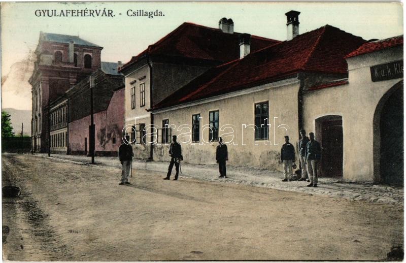 Gyulafehérvár, Alba Iulia; Csillagda, Cs. és kir. Kis gyalogsági laktanya, Batthyáneum könyvtár, katonák / K.u.k. Kleine Infanterie Kaserne / observatory, military barracks, library, street, soldiers + K.u.k. Rekonvaleszentenabteilung Nr. 46. Könyvtár