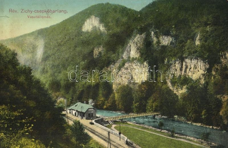 Rév, Vad, Vadu Crisului; Zichy cseppkőbarlang, vasútállomás / railway ...