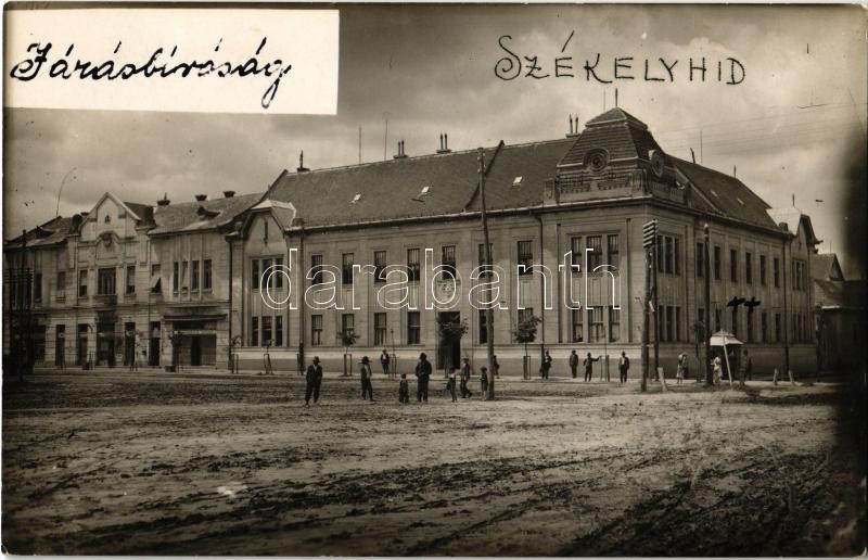 Székelyhíd, Sacueni; Járásbíróság, Maximilián Stern üzlete, tél / county court, shop, winter. photo