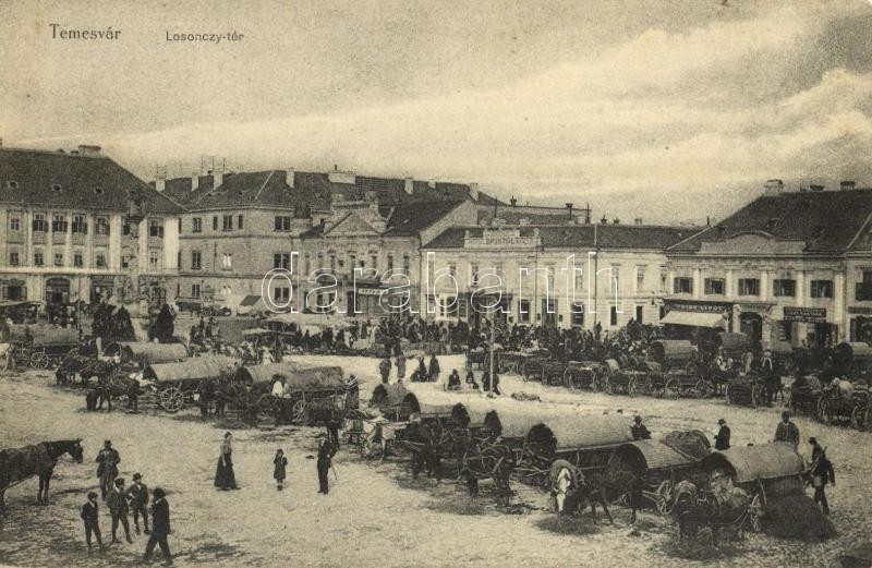 Temesvár, Timisoara; Losonczy tér, piac, Bristol szálloda, Weisz Lipót...