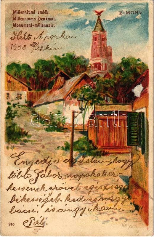 1908 Zimony, Semlin, Zemun; Milleniumi emlék / Milleniums-Denkmal / Monument millennair. litho s: Heyer (fl)
