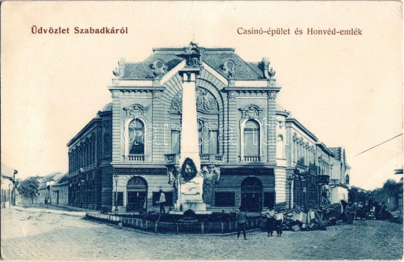 Szabadka, Subotica; Kaszinó épület és Honvéd emlék, Délvidéki Általáno... https://www.darabanth.com/en/32-Major-auction/32.1/Postcards/Vojvodina~13730/Szabadka-Subotica-Kaszino-epulet-es-Honved-emlek-Delvideki-Altalanos-Takarekpenztar-~II1947704
