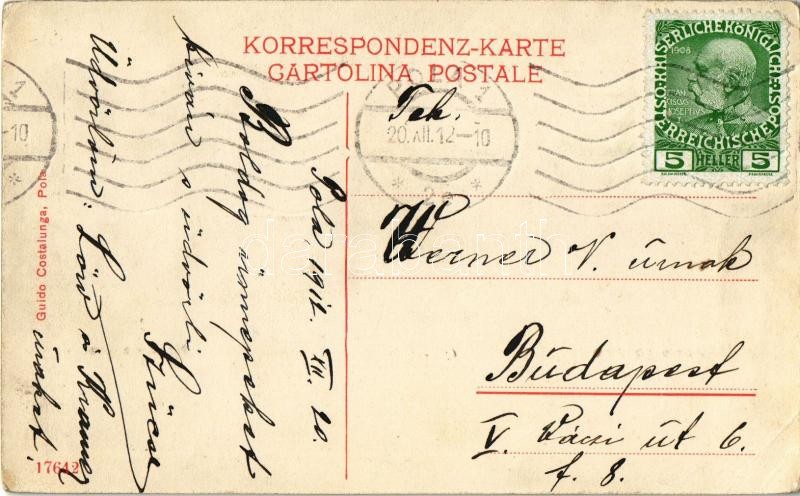 1910 Manovre notturne / Nachtmanöver. Schlachtschiff Eh. Friedrich, Torpedoboot / Osztrák-Magyar Haditengerészet SMS Erzherzog Friedrich pre-dreadnought (Linienschiffe) csatahajója és torpedónaszádja éjszakai manőveren / Austro-Hungarian Navy K.u.K. Kriegsmarine, SMS Erzherzog Friedrich pre-dreadnought battleship and torpedo boat on night maneuver. Guido Costalunga (EK)