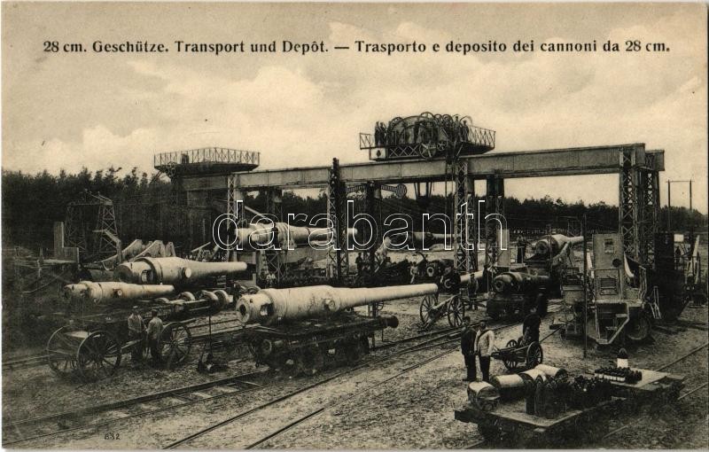 28 cm Geschütze. Transport und Depot. K.u.K. Kriegsmarine / Trasporto ... https://www.darabanth.com/en/32-Major-auction/32.1/Postcards/Warship~13795/28-cm-Geschutze-Transport-und-Depot-KuK-Kriegsmarine-Trasporto-e-deposito-dei-cannoni-da-28-~II2033917
