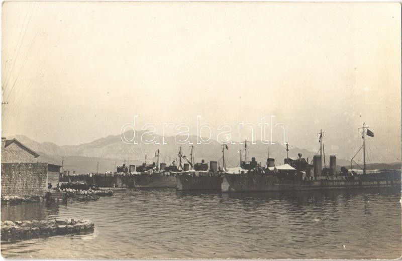 Kotor, Cattaro; SM Tb 81 T (később román Sborul, majd szovjet Musson), 85 F (később portugál Zezere), 79 T (később Jugoszláv T4), 87 F (később Jugoszláv T5) és 83 F (később román Smeul, majd szovjet Toros) osztrák-magyar haditengerészet torpedónaszádjai a kikötőben / K.u.K. Kriegsmarine Torpedoboote 81 T, 85 F, 79 T, 87 F und 83 F / WWI Austro-Hungarian Navy torpedo boats at the port. photo