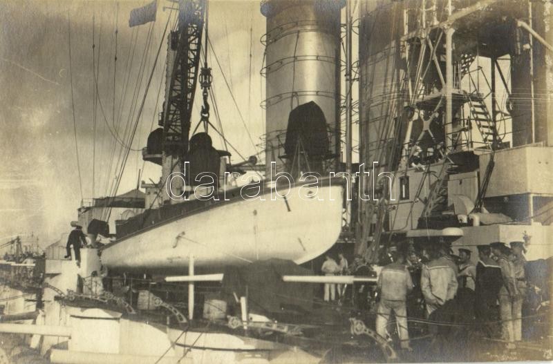 Mentőcsónak daruval való beemelése osztrák-magyar haditengerészet csat...