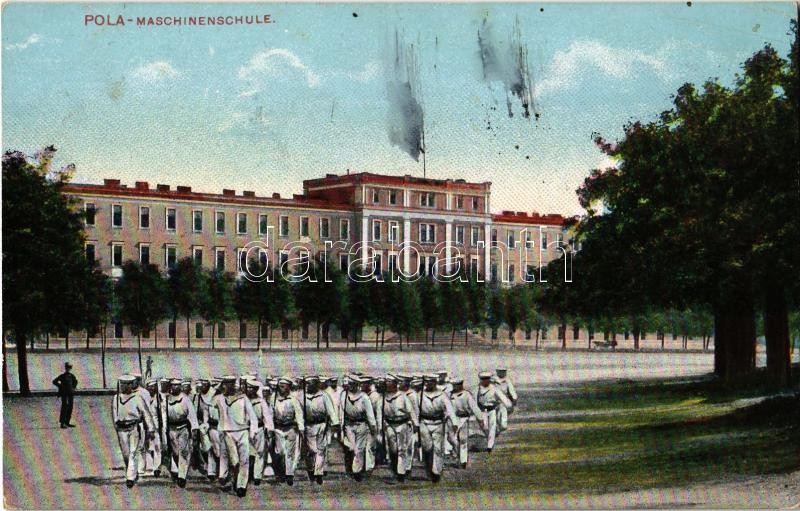 https://www.darabanth.com/en/32-Major-auction/32.1/Postcards/Warship~13795/Pola-Pula-KuK-Kriegsmarine-Maschinenschule-Austro-Hungarian-Navy-machinery-school-with-marine~II2036041