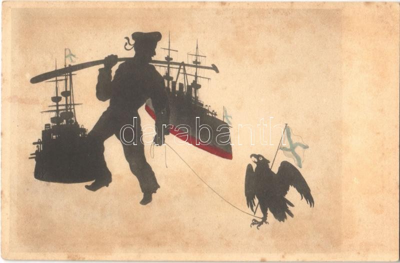 https://www.darabanth.com/en/32-Major-auction/32.1/Postcards/Warship~13795/Russo-Japanese-War-naval-battle-Silhouette-art-postcard-with-mariner-battleships-and-eagle-fl~II2046939