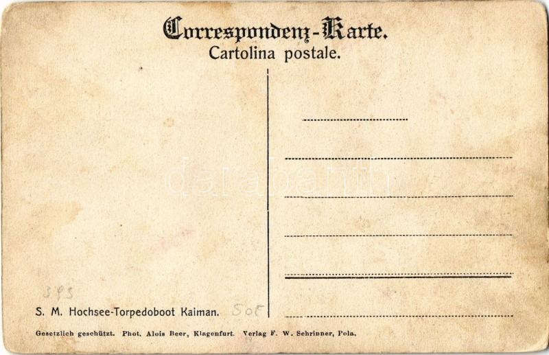 SMS Kaiman (később SM Tb 50 T) osztrák-magyar haditengerészet Kaiman-osztályú torpedónaszádja / K.u.K. Kriegsmarine SM Hoschsee-Torpedoboot Kaiman / Austro-Hungarian Navy SMS Kaiman (later SM Tb 50T) Kaiman-class torpedo boat. Phot. Alois Beer (kopott sarkak / worn corners)