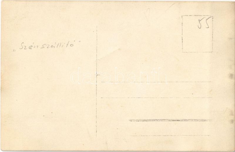 Szénszállító hajó, fedélzetén szenet lapátoló osztrák-magyar matrózokkal / WWI Austro-Hungarian K.u.K. Kriegsmarine coaler ship with mariners, photo