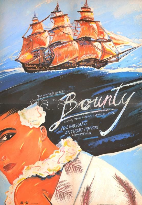 1987 Rácmolnár Sándor (1960 - ): Bounty, amerikai film plakát, főszerepben: Mel Gibson, Antony Hopkins, ofszet, hajtott, 80x60 cm