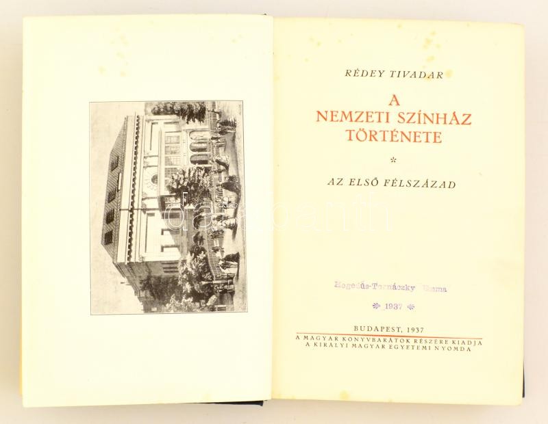 Rédey Tivadar: A Nemzeti Színház története. Az első félszázad. Budapes... https://www.darabanth.com/en/320-Online-auction/320.0/Books/Books-Architecture-Art~2000006/Redey-Tivadar-A-Nemzeti-Szinhaz-tortenete-Az-elso-felszazad-Budapest-1937-Kiralyi-Magy~II1770547