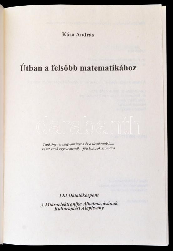 Kósa András: Útban a felsőbb matematikához. Bp., (1995), LSI Oktatóközpont. Kiadói kartonált papírkötés. Jó állapotban.