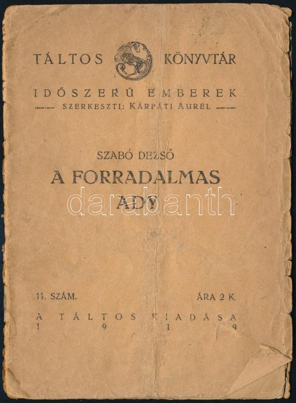 https://www.darabanth.com/en/320-Online-auction/320.0/Books/Books-Other-rarities~2000016/Szabo-Dezso-A-forradalmas-Ady-Budapest-1919-A-Taltos-Kiadasa-Taltos-Konyvtar-11-szam-~II1755311