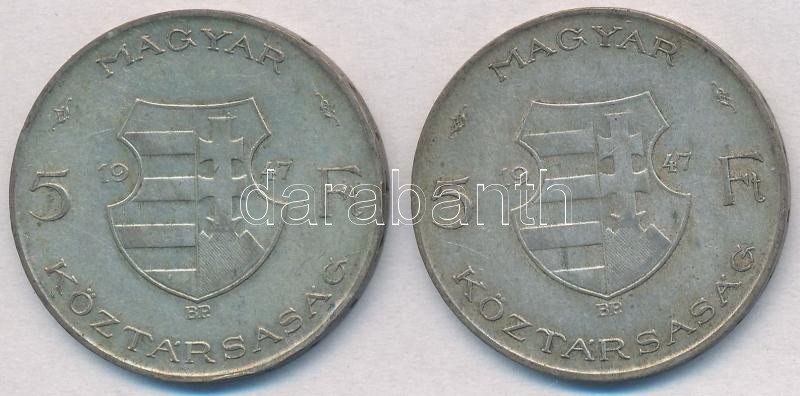 1947. 5Ft Ag "Kossuth" (2x) T:2-