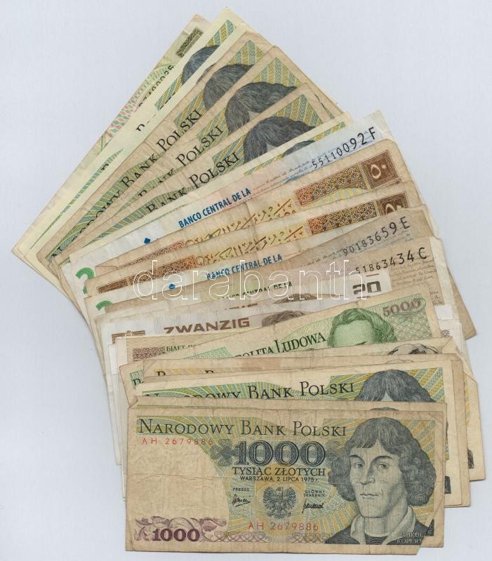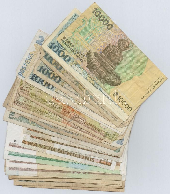 27db-os vegyes külföldi bankjegy tétel, közte Argentína, Ausztria, Fehéroroszország, Lengyelország, Szíria T:III 27pcs of Argentina, Austria, Belarus, Poland, Syria C:F