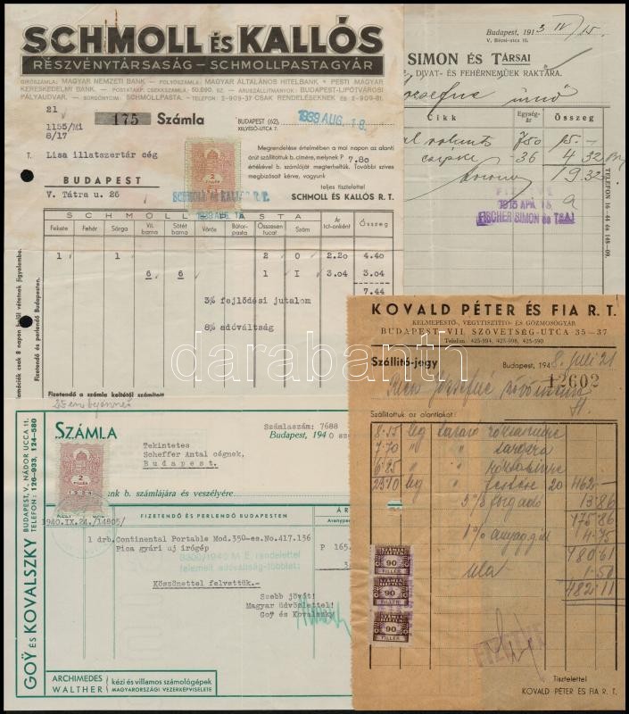 https://www.darabanth.com/en/320-Online-auction/320.0/Other-collectibles/Documents~500017/1913-1948-Bp-4-db-fejleces-szamla-3-okmanybelyeggel-Schmoll-es-Kallos-Fischer-Simon-es-T~II1769677