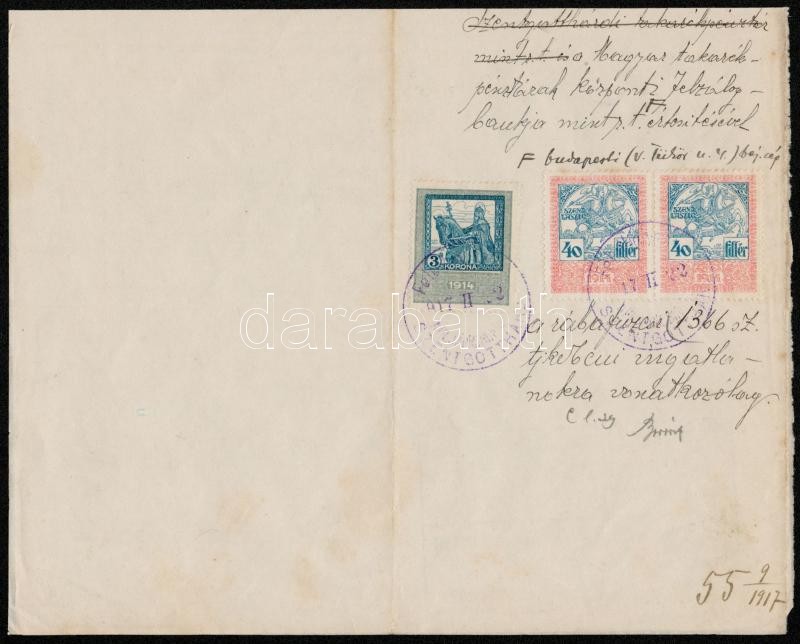 1917 Okmány 2x40f, 3K okmánybélyegekkel, SZENT-GOTTHÁRD