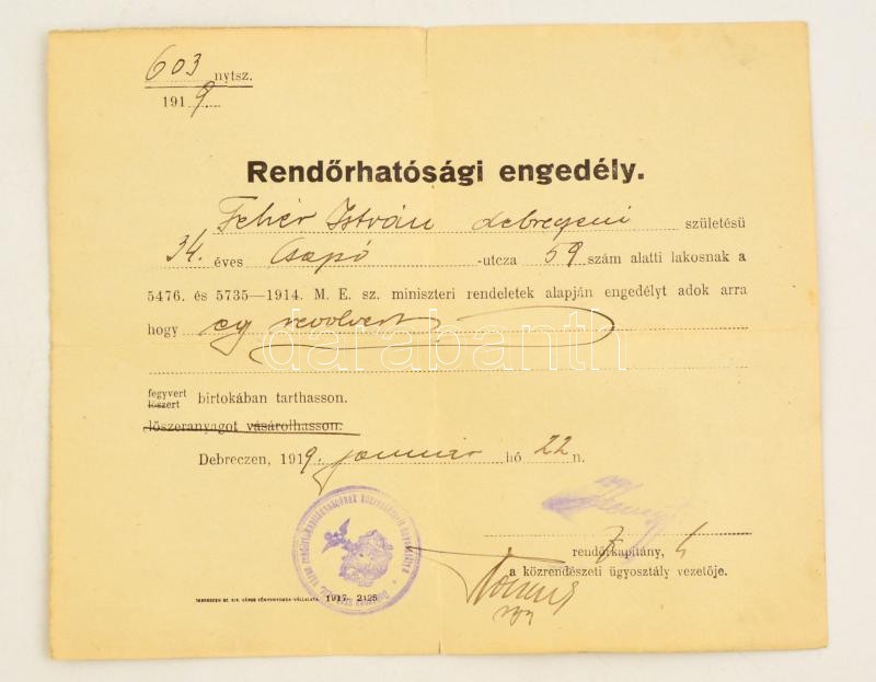 https://www.darabanth.com/en/320-Online-auction/320.0/Other-collectibles/Documents~500017/1919-Debrecen-fegyvertartasi-engedely-debreceni-lakos-reszere~II1767753