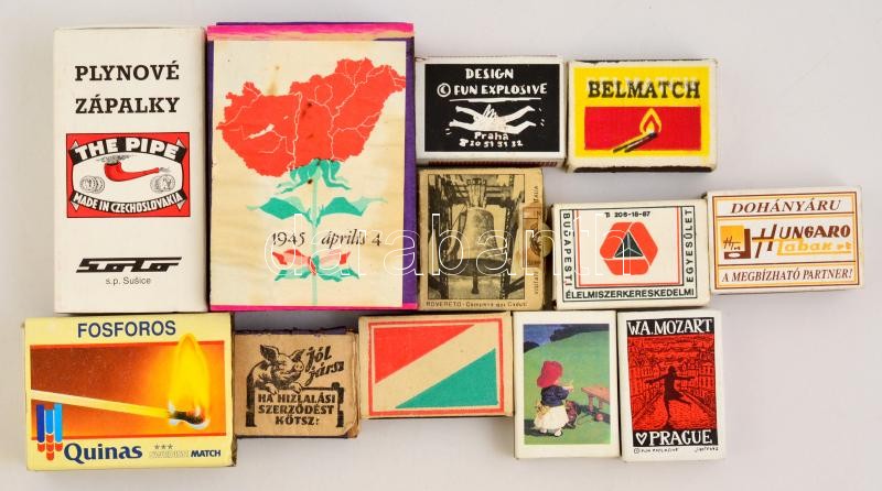 12 db különféle gyufásdoboz, tartalommal