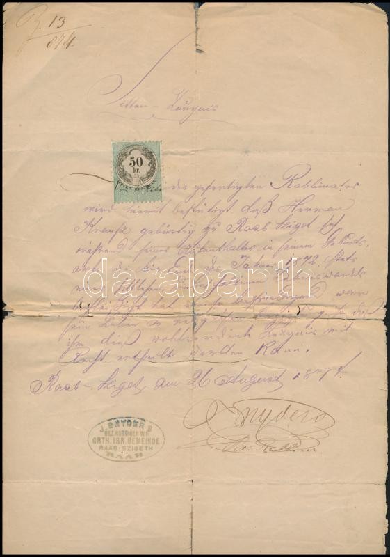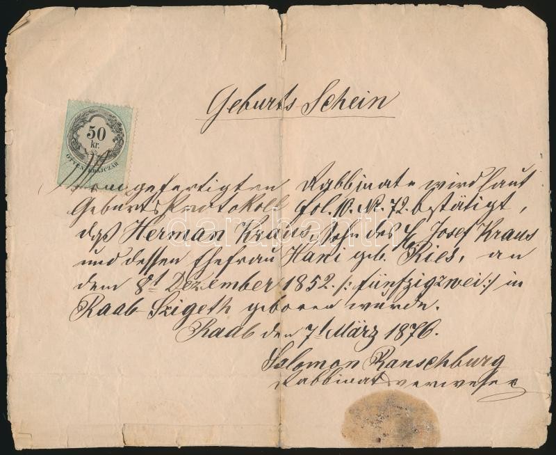 1874-1876 Győr / Győr-Sziget, születési igazolás és számla Ranchburg S... https://www.darabanth.com/en/320-Online-auction/320.0/Other-collectibles/Judaica~500025/1874-1876-Gyor-Gyor-Sziget-szuletesi-igazolas-es-szamla-Ranchburg-Salamon-1816-1895-gyo~II1747974