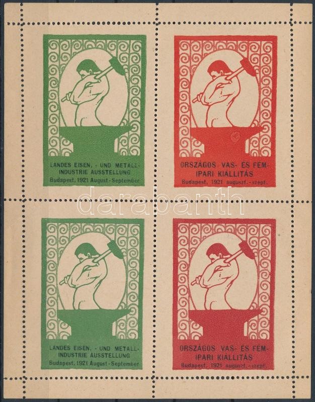 1921 Országos Vas- és Fémipari kiállítás 4 bélyeget tartalmazó levélzáró kisív