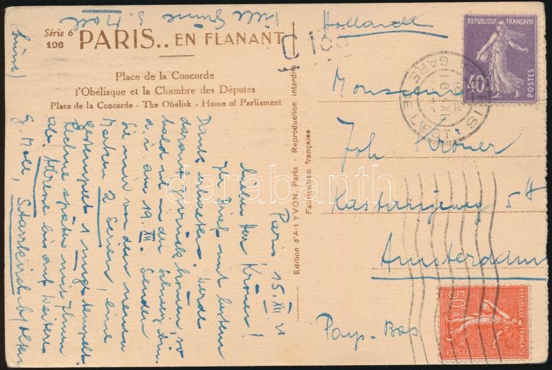 1928 Párizsi képeslap Hollandiába antituberkulózis adománybélyeggel