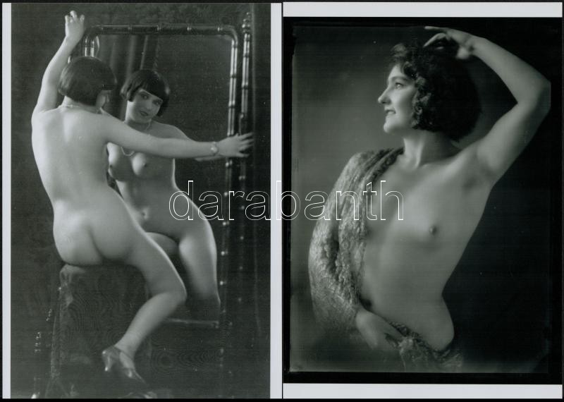 Description: cca 1928 Demeter Károly (1892-1983) párizsi korszakából való szolidan erotikus felvételek, 2 db vintage üveglemez negatívról készült modern nagyítás, 25x18 cm