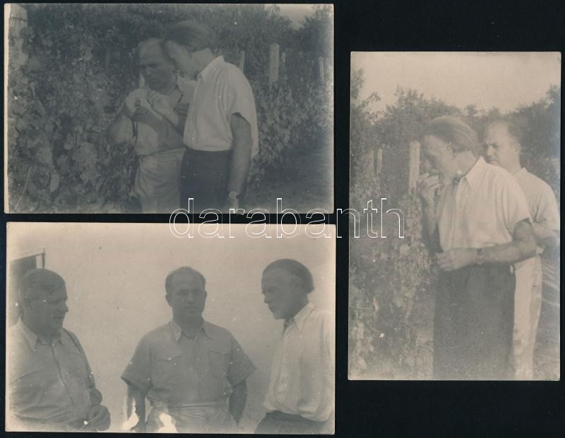 cca 1960 Kodály Zoltán (1882-1967) zeneszerző szőlőben, 3 db fotólap, 9x14 cm