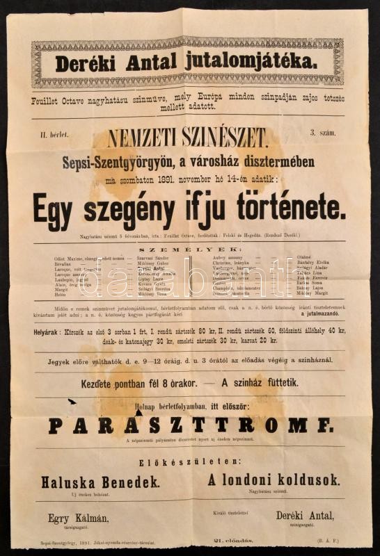 1891 Sepsiszentgyörgy, színielőadás hirdetménye, foltos, 47×31,5 cm