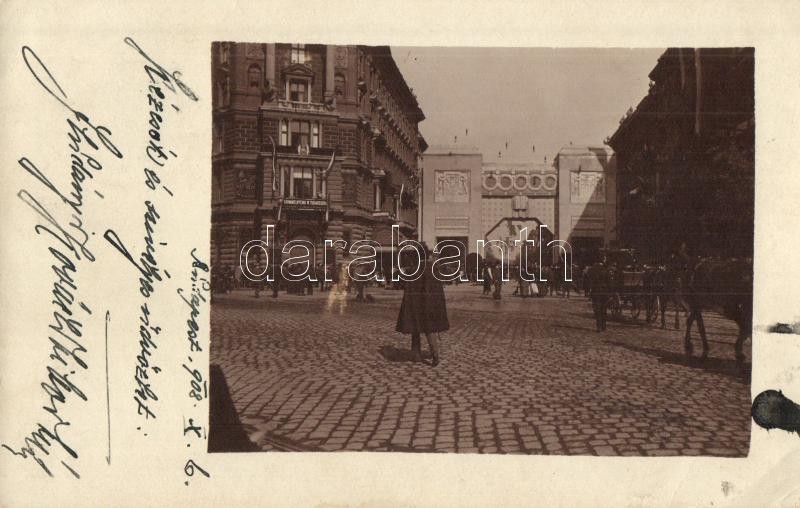 1908 Budapest VI. Andrássy út, díszkapu, Chimmelpfeng W. tudakozója, takarékpénztár, Fonciere biztosító intézet, photo (EK)