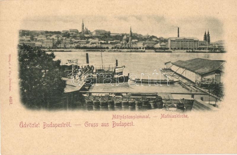 Budapest V. Látkép a Mátyás templommal, rakpart gőzhajó