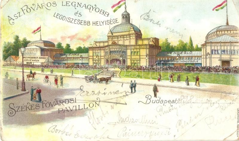 Budapest XIV. Székesfővárosi Pavilon, Bokor János vendéglője, étterem, Weingruber Ignác kávéháza. Kosmos Art Nouveau, litho (r)