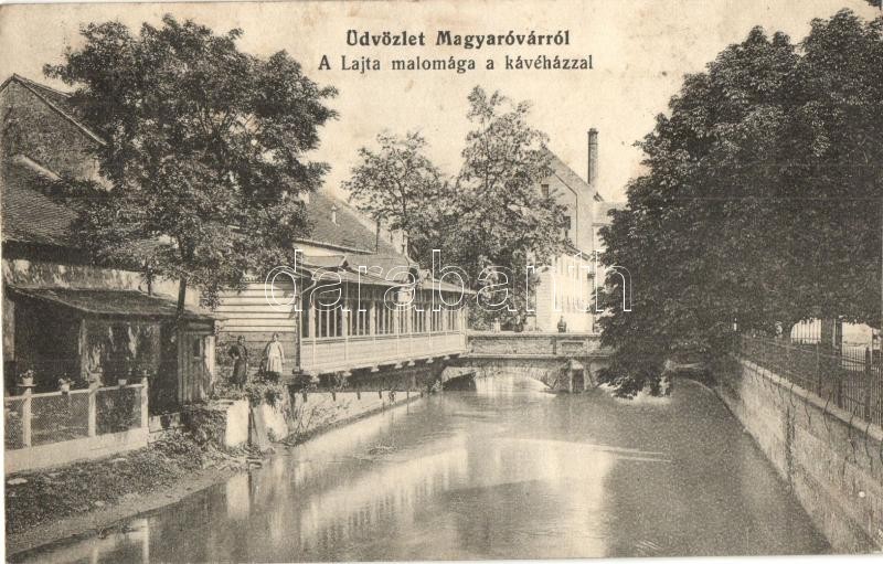 Magyaróvár, Mosonmagyaróvár; A Lajta malomága, kávéház. Pingitzer Igná...