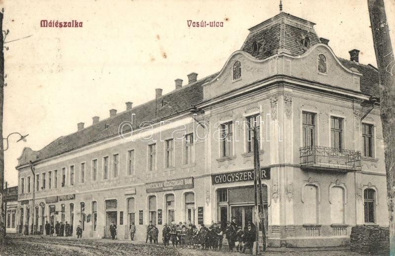 Mátészalka, Vasút utca, Gyógyszertár, Közgazdasági Bank, üzletek. Weisz Zsigmond kiadása (fl)