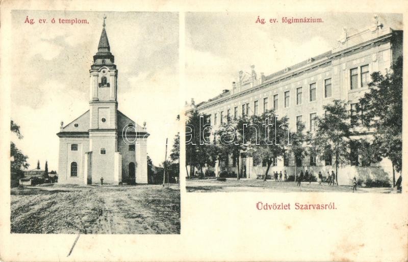 Szarvas, Evangélikus ó templom, Evangélikus főgimnázium. Farkas Soma kiadása (EK)