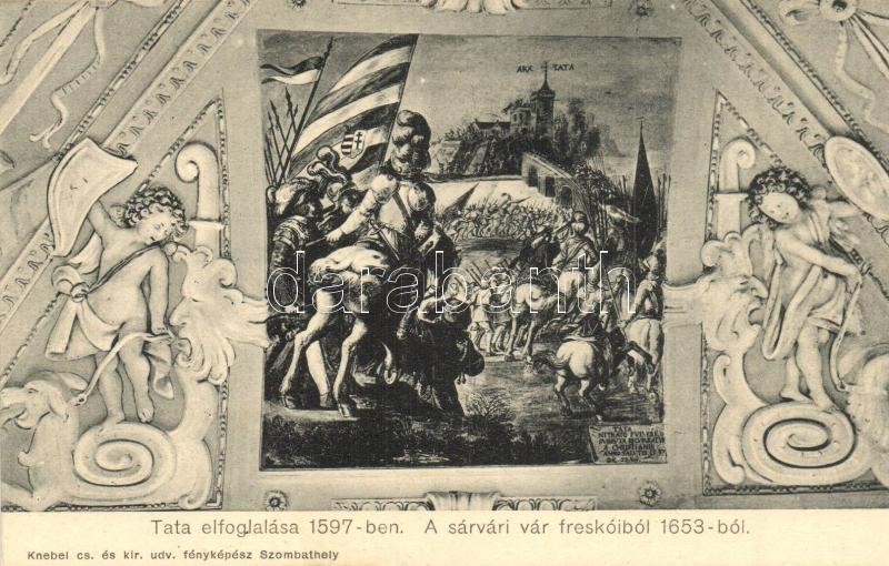 Tata, Tatai vár elfoglalása 1597-ben. A sárvári vár freskóiból 1653-ból. Knebel fényképész