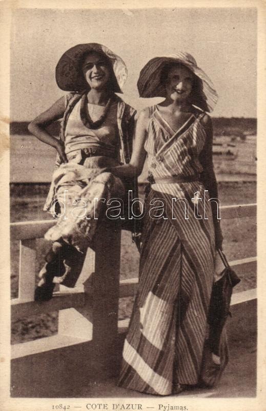 Cote d'Azur / French Riviera, ladies in pyjamas on the beach