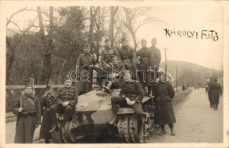 1939 Magyar katonák egy kilőtt cseh harckocsin Nagyszőlősnél / WWII Hu... https://www.darabanth.com/en/320-Online-auction/320.0/Postcards/Militaria~1500066/1939-Magyar-katonak-egy-kilott-cseh-harckocsin-Nagyszolosnel-WWII-Hungarian-soldiers-with-sho~II1765250