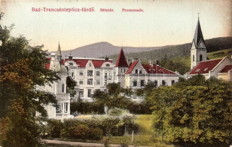 Trencsénteplic-fürdő, Kupele Trencianske Teplice; Sétatér / promenade ...