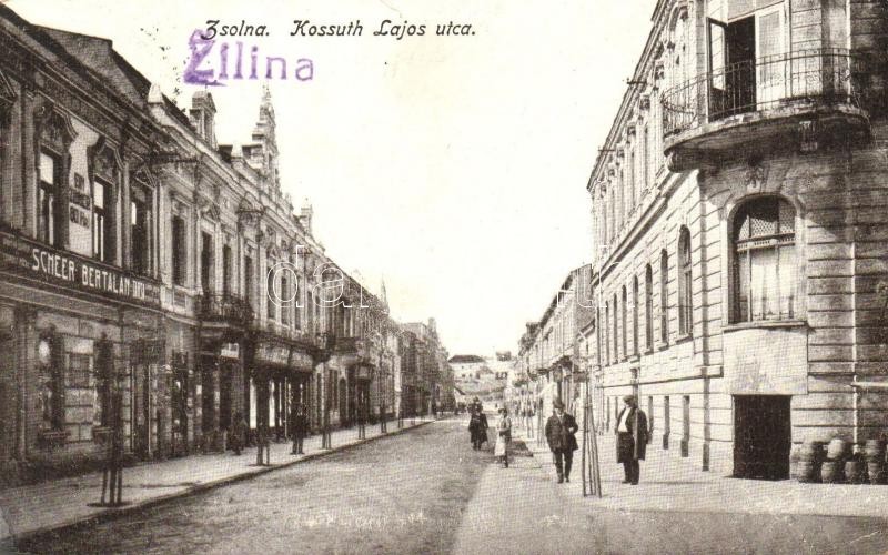 Zsolna, Zilina; Kossuth Lajos utca, Scheer Bertalan és Társa üzlete. S...