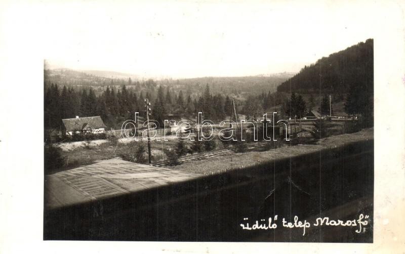 1941 Marosfő, Izvoru Muresului; Üdülőtelep, vasúti sínek, vagon / summ...
