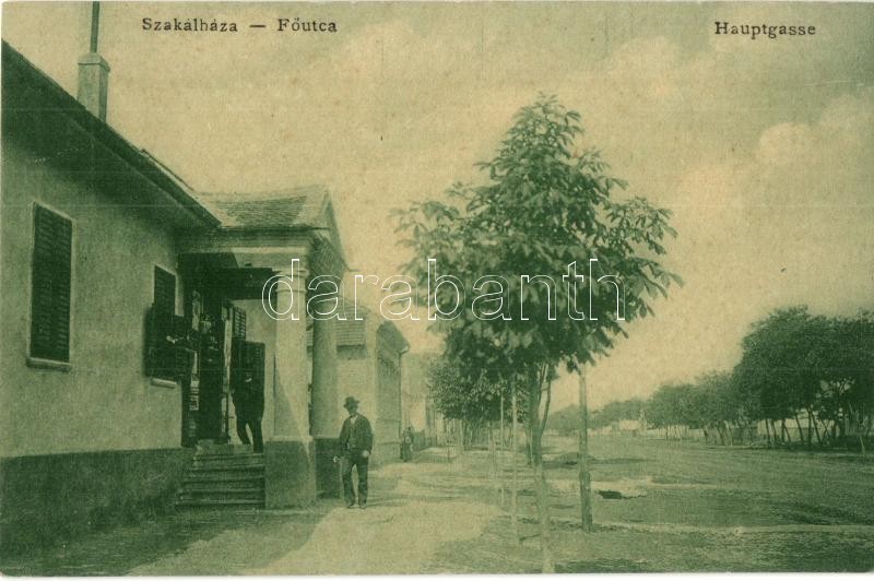 Szakálháza, Sacalaz; Hauptgasse / Fő utca, üzlet. Kiadja Feszl József ...