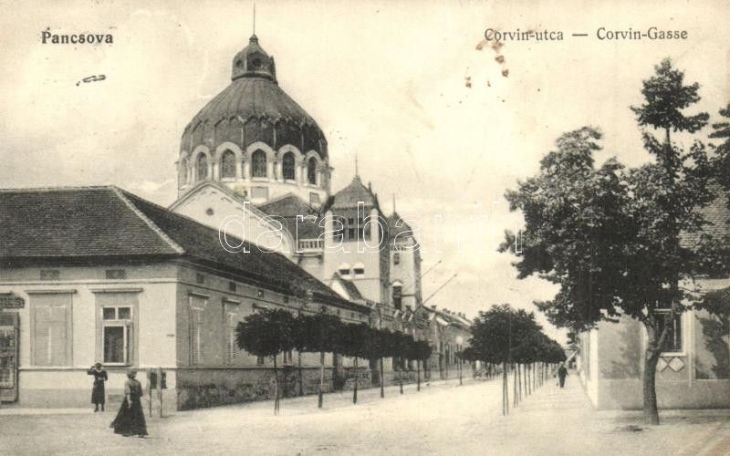 Pancsova, Pancevo; Corvin utca, Zsinagóga. Horovitz kiadása / street v...