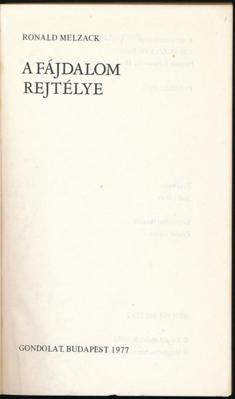 Melzack, Ronald: A fájdalom rejtélye. Bp., 1977, Gondolat. Kiadói papírkötés, jó állapotban.