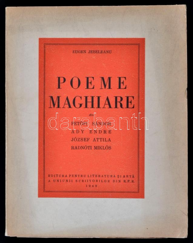 Poeme Maghiare din Petőfi Sándor, Ady Endre, József Attila, Radnóti Mi... https://www.darabanth.com/en/321-Online-auction/321.0/Books/Books-Other-rarities~2500020/Poeme-Maghiare-din-Petofi-Sandor-Ady-Endre-Jozsef-Attila-Radnoti-Miklos-Forditotta-Eugen-~II1779569