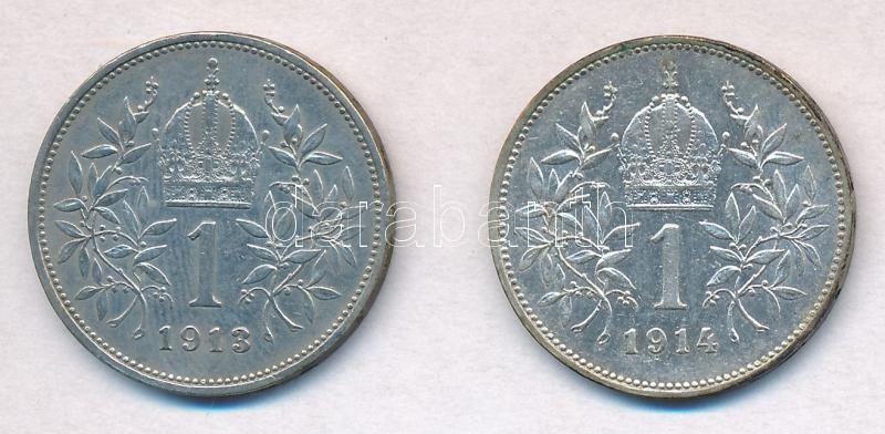 Ausztria 1913-1914. 1K Ag "Ferenc József" (2x) T:2 patina Austria 1913...