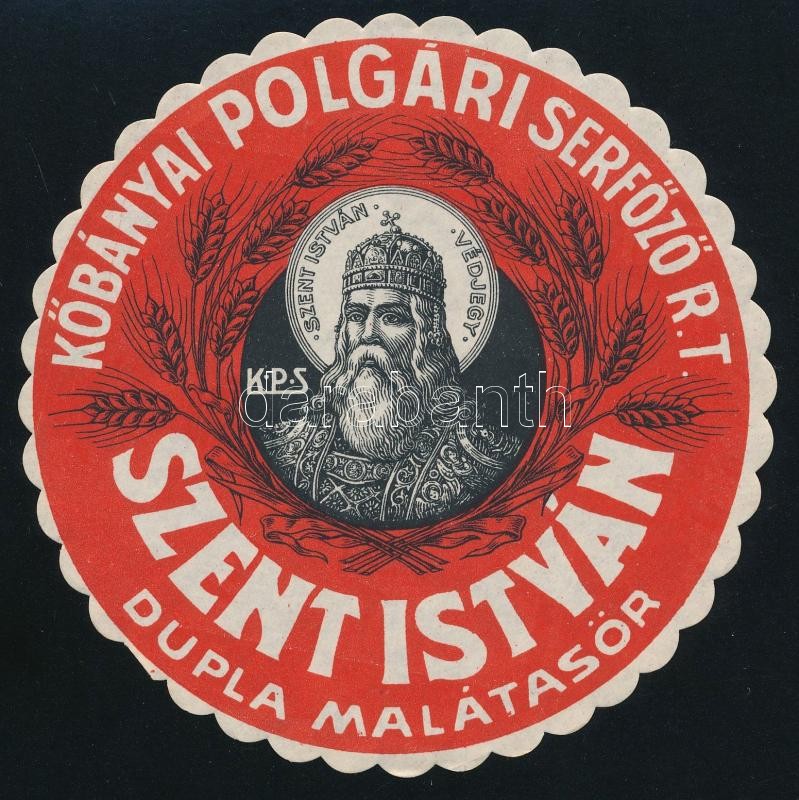 cca 1930 Szent István dupla malátasör, sörcímke, Kőbányai Polgári Serf...