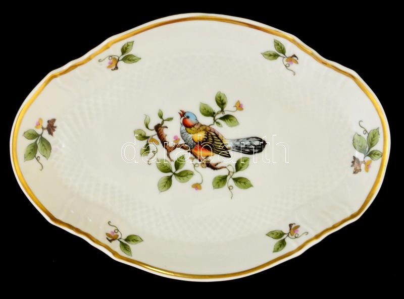 Hollóházi madaras mintás porcelán tálka, kézzel festett, jelzett, hibátlan, 18×12,5 cm