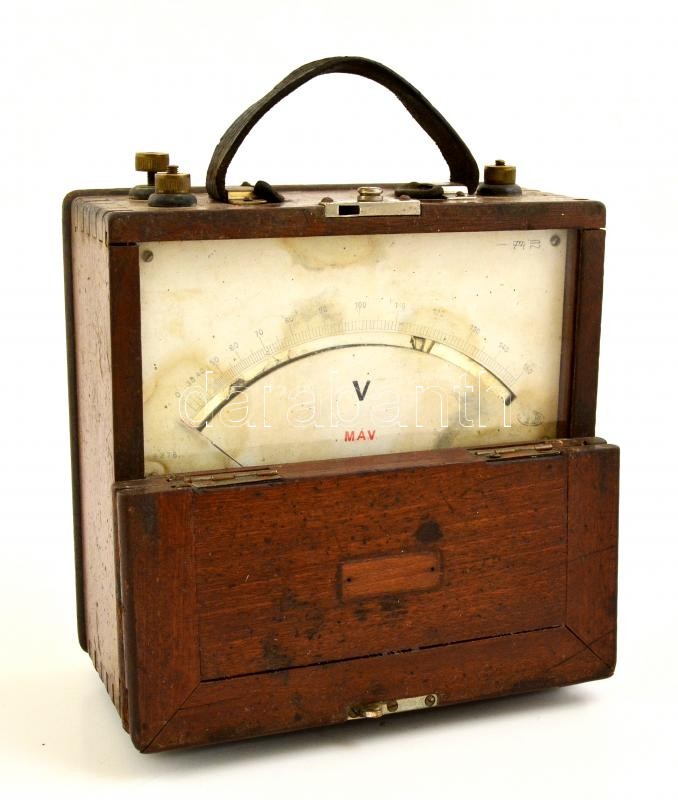 Régi Volt mérő (MÁV), fa dobozban, 18×19 cm